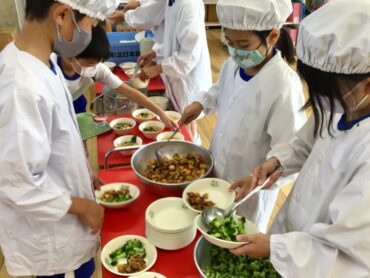 ”高岡野菜の五目あんかけ”が、次々と盛り付けられていきます。