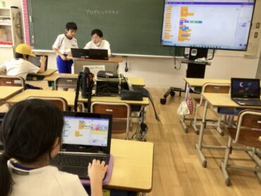 プログラミングクラブでは、「スクラッチ」を使って、アニメーションやゲームを制作中…