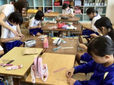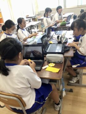 折り紙クラブでは、学習専用端末で動画を見ながら思い思いの作品作りを楽しんでいます。