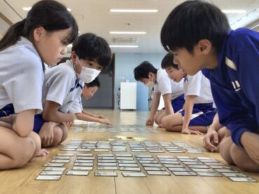 万葉かるたクラブは、すばやく反応しようと札に目を凝らし、読み手の声に耳を澄ませます。