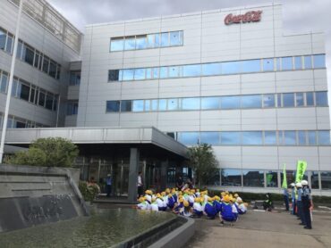 会社の前をお借りしたコカ・コーラの方にお礼を伝えます。