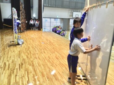 体育館から1年生の元気な声が聞こえてきます。