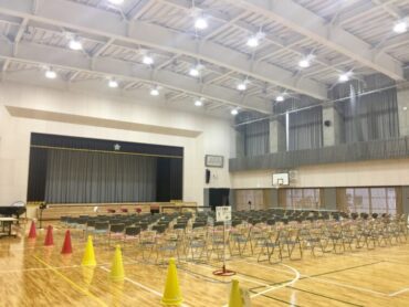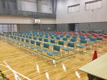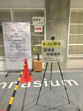 8:30開場としておりますので、職員の案内があるまで、体育館への入場はお控えください。
