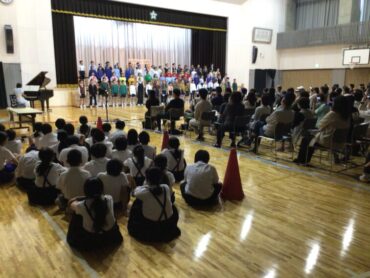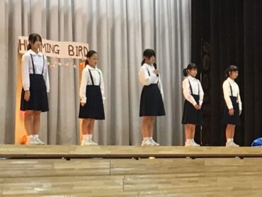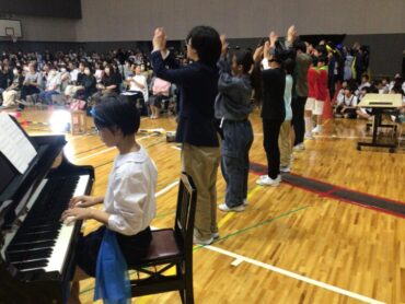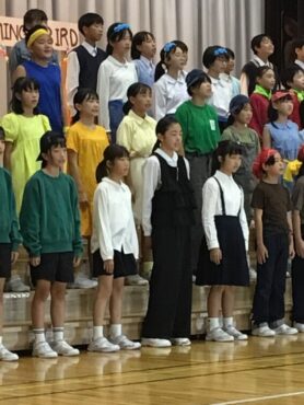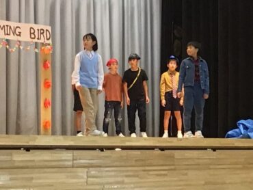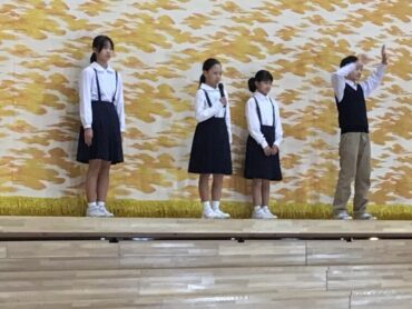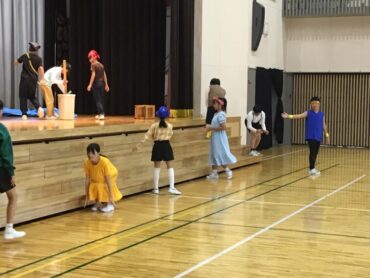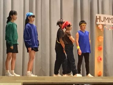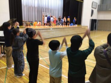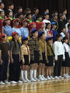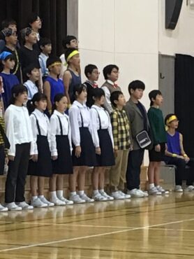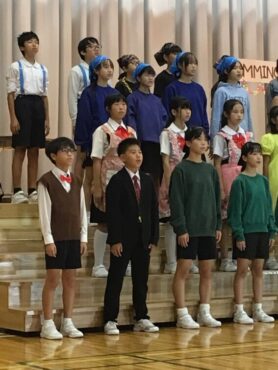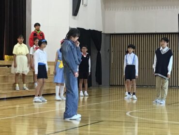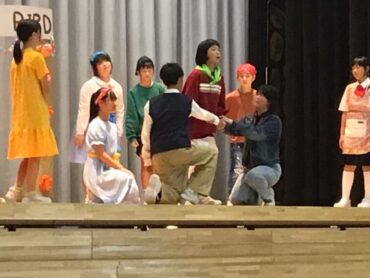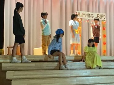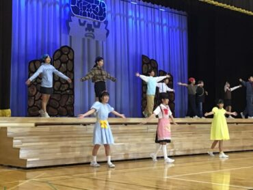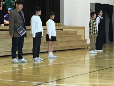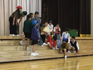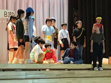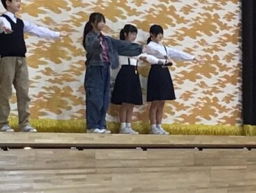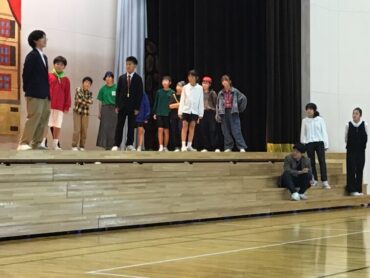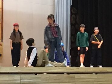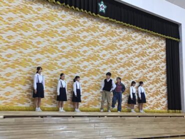 2025.10.4 6年生 学校行事 6年 学習発表会ステージ発表 プログラム6番 6年 劇 「嵐の中の子どもたち」 嵐の中に取り残された子供たちの心情を想像しながら、友情と思いやりをテーマに精一杯演じました。 エンディングの合唱は、これまでの6年生の努力を想うと、聴いている方も胸が熱くなりました。 照明から舞台装置まで、自分たちで作り上げてきたステージは、きっと生涯思い出に残るものとなるでしょう。