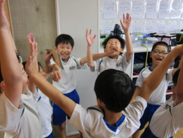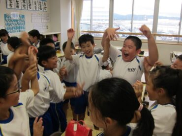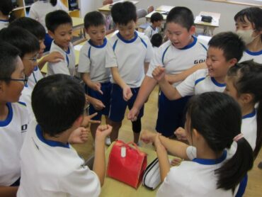 昼休み終了後、各学級では、昨日の人間関係づくり研修会で取り上げられた”ラッキー7ジャンケン”を楽しんでいます。