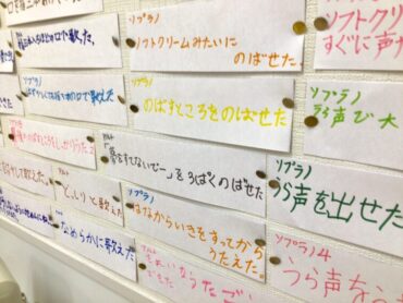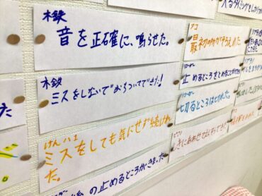 一人一人が努力を積み重ねてきた足跡が、5年生教室前の掲示板に記されています。