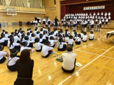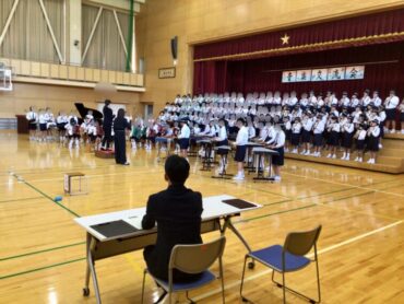 福岡小学校の5年生は人数が多く、たくさんの楽器が使われており、大迫力の素晴らしい演奏でした。