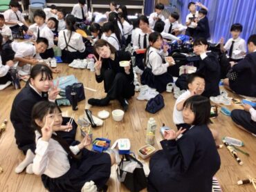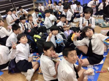 3階からは、福岡小学校の友達が手を振って見送ってくれました。