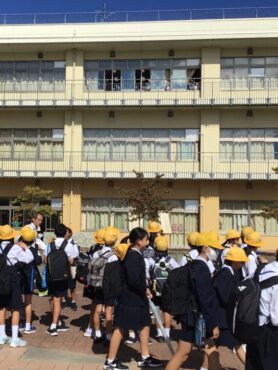 お世話になった福岡小学校の先生方にお礼を言って、学校を後にします。
