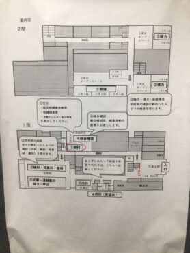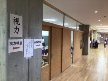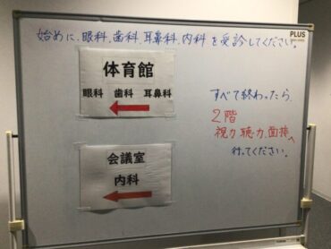 4つの科の診察を終えたら、2階に上がり、視力、聴力、面接の検査に進んでいただきます。
