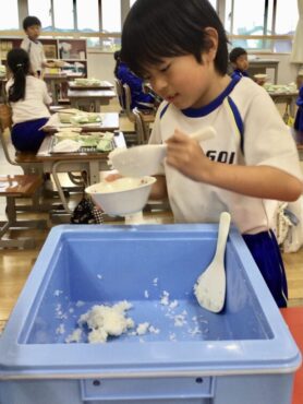まずは、自分に合った量の給食を残さず食べることを通して…