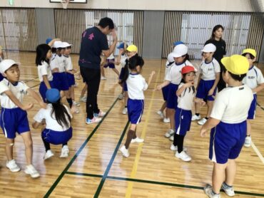 2年生が、運動遊びアドバイザーの先生といっしょに学習をします。