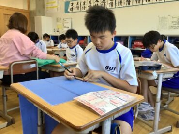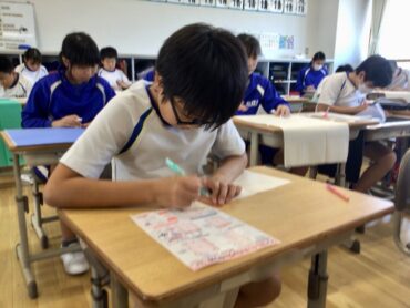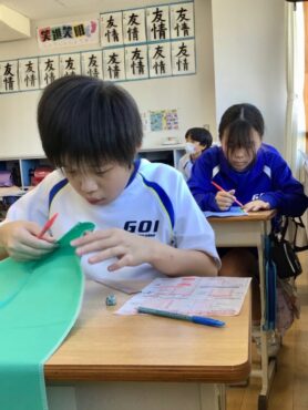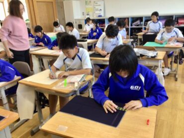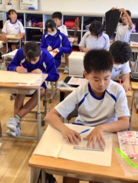 2025.10.20 NEW 6年生 6年 家庭「ソーイングで生活を豊かに」 6年生は、真剣なまなざしで布と向き合っています。 説明図を見ながら… ぬいしろを取って… できあがり線を、チャコペンで引いているようです。 布の色は、それぞれが好きなものを選んでいます。 この後は、わきを縫ってから、出し入れ口を縫い上げ… 持ち手のひもを縫い付けると… トートバッグに仕上がる予定です。 フェルトを縫い付けてデザインするので、どんなトートバックになるのか楽しみです。