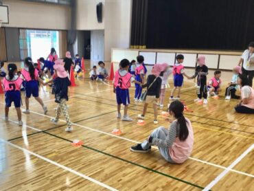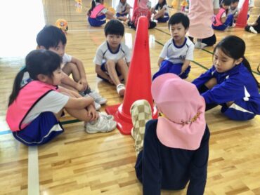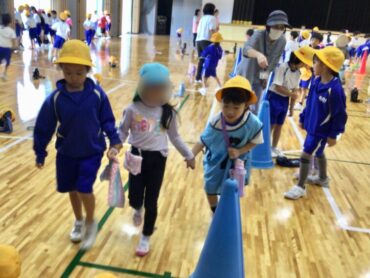 2025.10.20 NEW 1年生 保育園交流会① 立野保育園、石堤保育園の年長さんを迎えて、1年生が交流会をします。 代表の子供たちが、”はじめのことば”で、年長さんを歓迎する気持ちを伝えます。 各グループのリーダーが、年長さんの手を引いて輪の中へ… グループでの自己紹介 順番に名前を言ってあいさつをします。 ここは、しっかりと1年生がお手本を示すところです。 ”しゃぼんだまあそび”の説明を聞いてから移動開始 ここでも、年長さんの手を取って… 1年生がやさしくエスコート… 靴を履いて外に出たら、楽しい時間の始まりです。