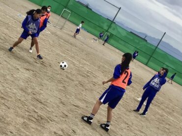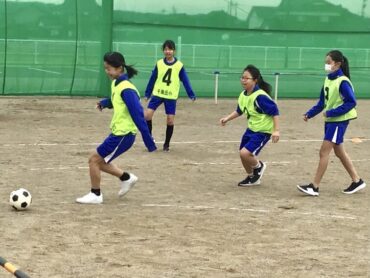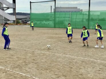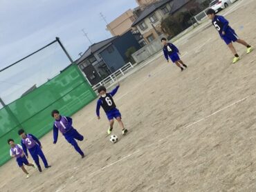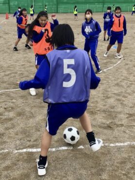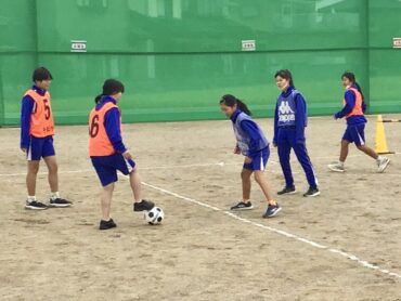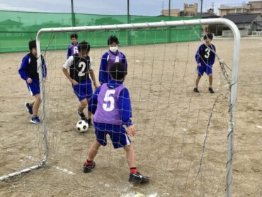 サイドから攻めるという基本の攻撃の練習をした後、試しのゲームです。