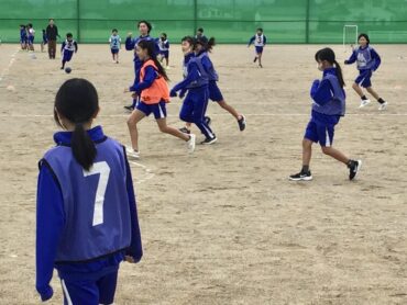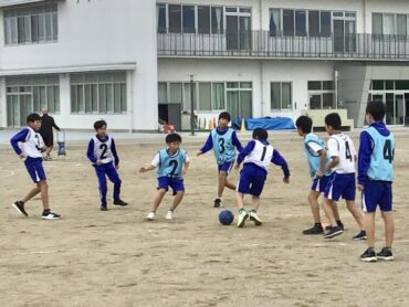 肌寒い日となりましたが、6年生は元気にグラウンドでサッカーです。