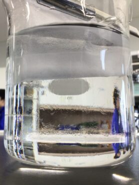 食塩がモヤモヤと水に溶けていく様子を観察することができます。
