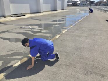 手間のかかる作業ですが、これをしておかないと、降雪時に、職員が駐車場に入れなくなることはもちろん…