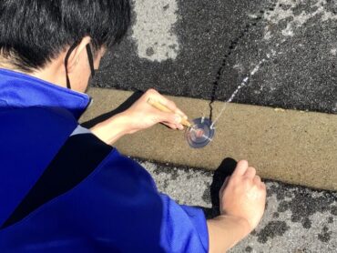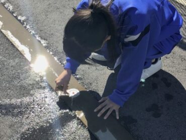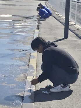 今日は、本校駐車場の融雪装置に詰まった砂や土を目打ちで取り除く作業を体験しています。