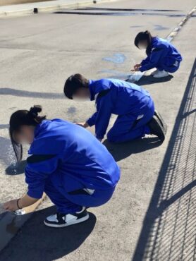 用務員さんに教えてもらいながら、清掃や除草などの環境整備をしたりするなど熱心に取り組んでいます。