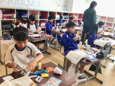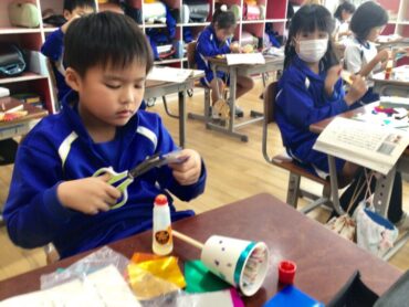 2年生の子供たちが、真剣に工作に取り組んでいまが、図画工作の時間では、ありません。