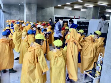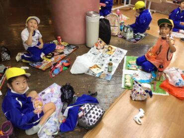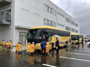 外は、あいにくの雨ですが、1年生が校外学習に出かけます。