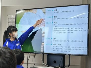 6年生は、自分の興味のある職業について調べ、グループごとにスライドにまとめたものを、5年生に向けて発表します。