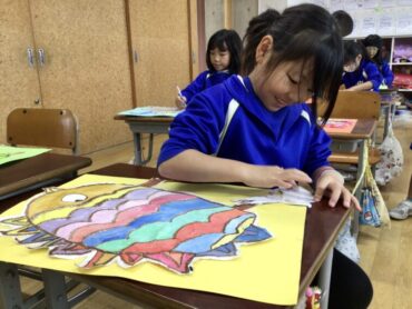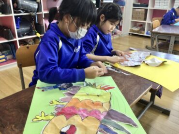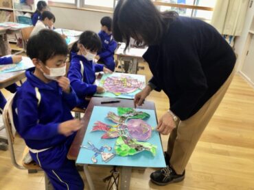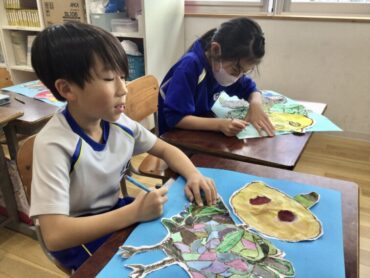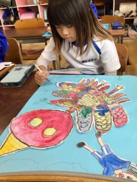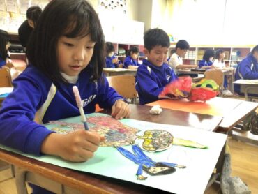 2年生の子供たちは、自分が想像する”まぼろしの鳥”を描いてきました。