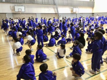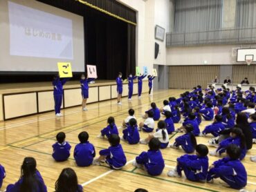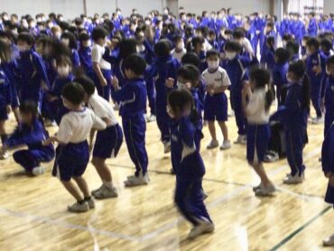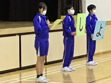 全校児童で、健康合言葉「ごいしょう」の歌を歌います。