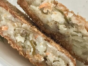 とろろ昆布と刻み昆布が、たっぷりと練り込まれた旨味たっぷりのコロッケです。