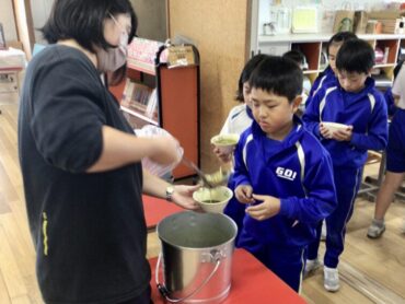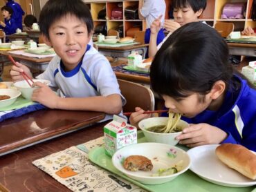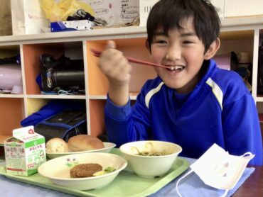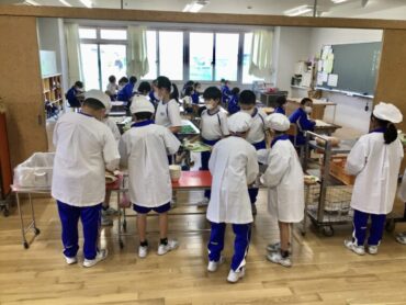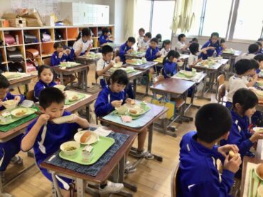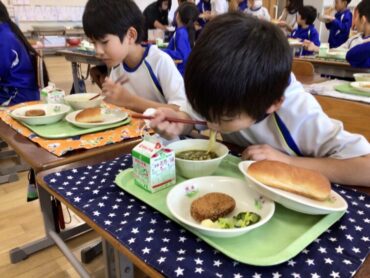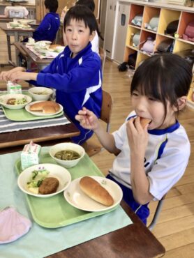 3年生の教室でも、配膳が進んでいます。