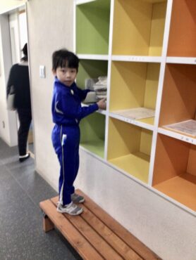 クラスボックスに配布物を取りに来た子供の姿もあります。