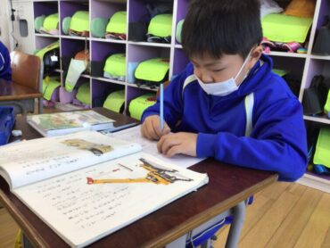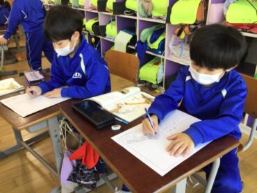 まずは、教科書をお手本に、”じどう車しょうかいカード”を書いてみます。