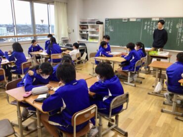 2学期を振り返って、学級としての成果と課題を話し合っています。