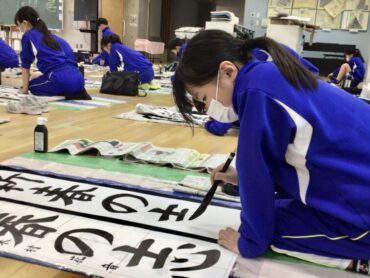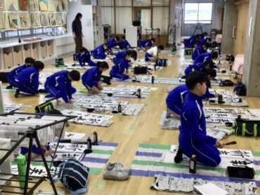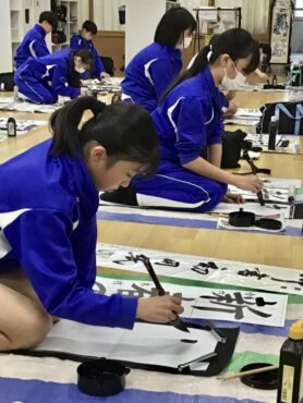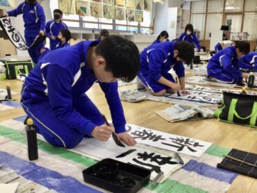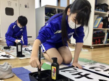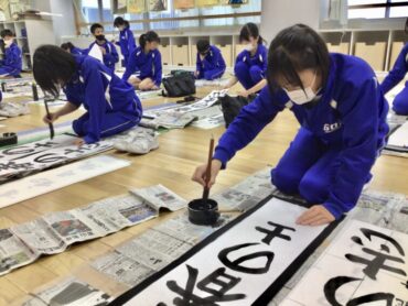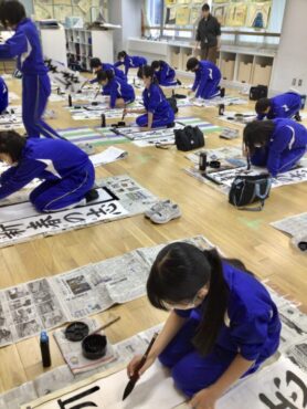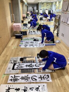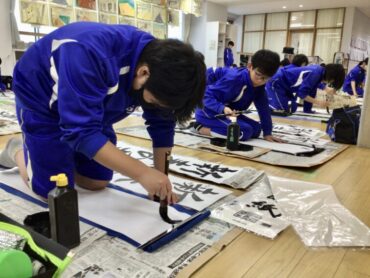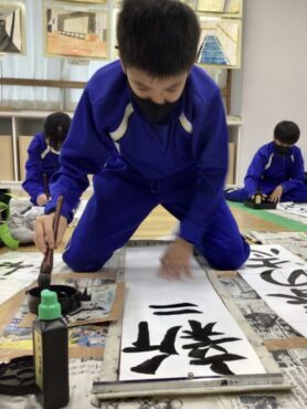 6年生でも、オープンスペースをいっぱいに使って、書初練習が始まりました。