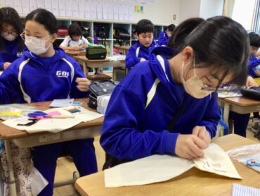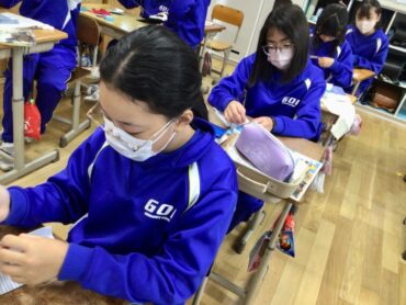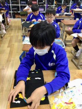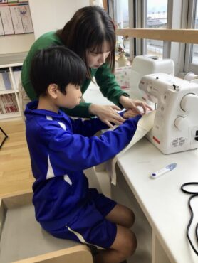 2025.12.3 NEW 5年生 5年 家庭「ミシンで楽しくソーイング」 5年生は、ウォールポケットを完成すべく… 布と格闘しています。 刺しゅう糸を吟味しながら… 飾りとなるアップリケを縫い付けるなど… 一針一針、丁寧に縫っています。 ベースとなる布には、ミシンがけをしなくてはなりません。 こちらも、安全に気を付けながら、落ち着いて取り組んでいます。 アイロンがけも、取り扱いに注意しながら慎重に… ミシンの使い方の学習から始まった”ウォールポケットづくり”も完成が近づいています。 2学期末の保護者会での作品展示で、お披露目する予定です。