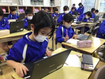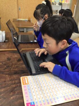 2025.12.8 NEW 3年生 ICT活用 3年 総合的な学習の時間「五位小フラワープロジェクト」 3年生の子供たちが、熱心に学習専用端末に向き合っています。 春以来、総合的な学習の時間を使って… 地域の花と緑の推進協議会の人に助けていただきながら… 学校花壇のお世話を続けてきました。 この活動の中で学んだことや… 草花について調べたことを… クイズなどにしてみんなに伝えることで… 草花を愛する心を広げようとしています。 ローマ字表を横において、タイピングにも奮闘中! どんな花のどんな豆知識を教えてくれるのでしょうか? 完成を楽しみに待ちたいと思います。
