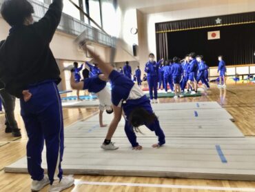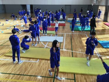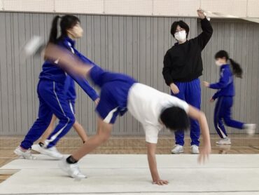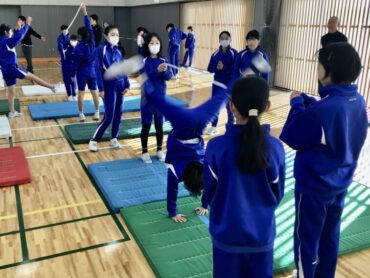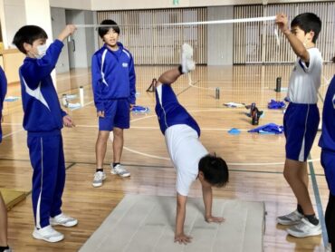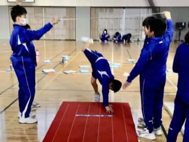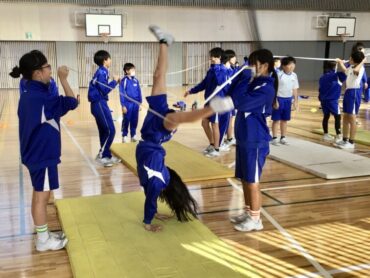 子供たちは、美しい”側方倒立回転”を成功させたいと…