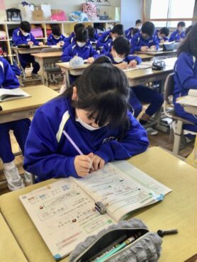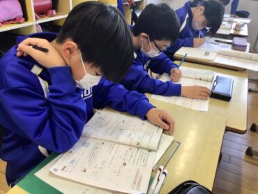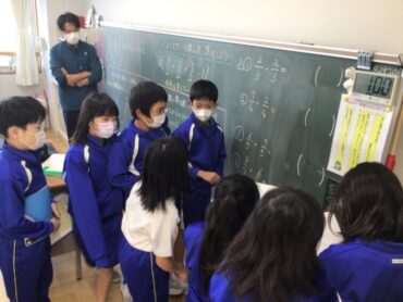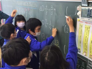 4年生が、分数の足し算の問題に取り組んでいます。