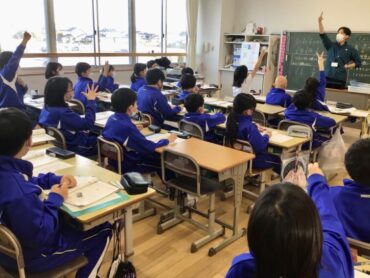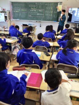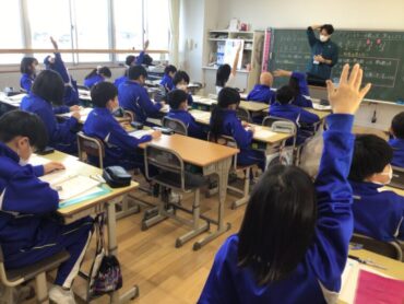 今回は、黒板に書く子供を先生とのジャンケンで…
