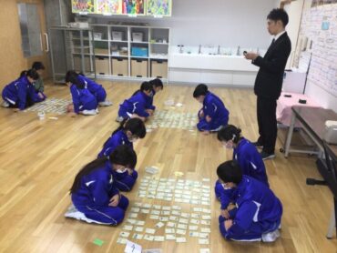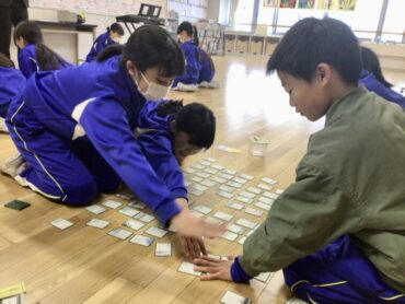 「万葉かるた大会」に出場する子供たちは、オープンスペースに集まって…
