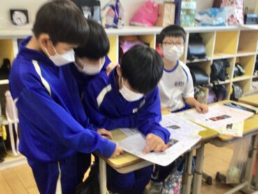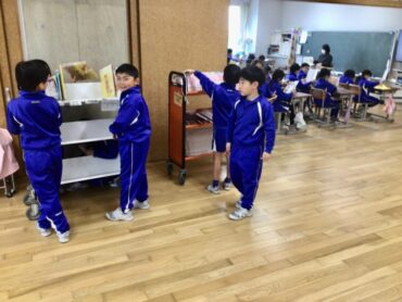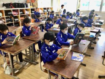 登校後の8時15分からの”朝活動”の時間には、学年や学級に応じて様々な活動が行われています。