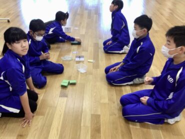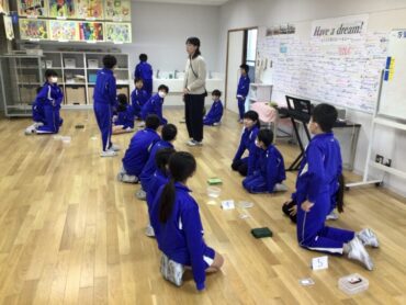 朝活動の時間、参加する4・5・6年生の子供たちが、練習のために集まってきました。