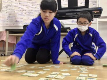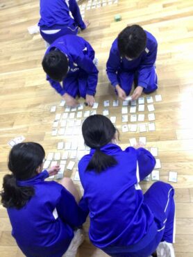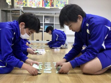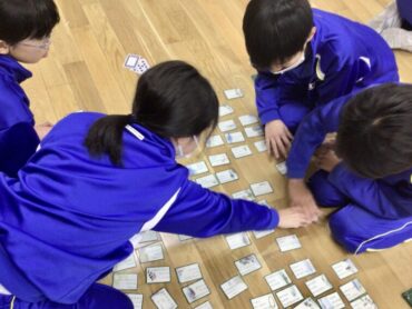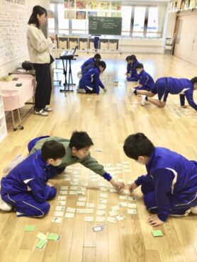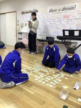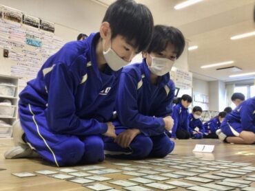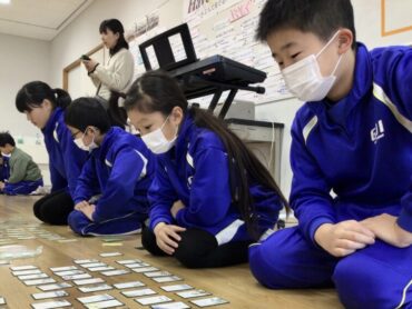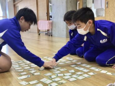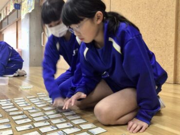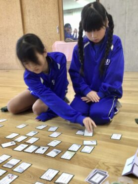 一人25枚の取り札を、自分が取りやすいように並べていきます。