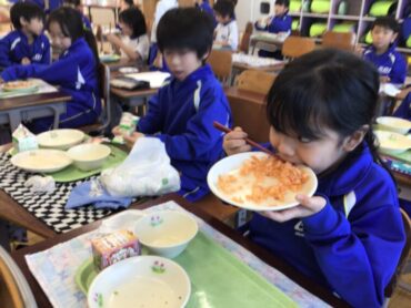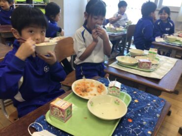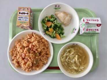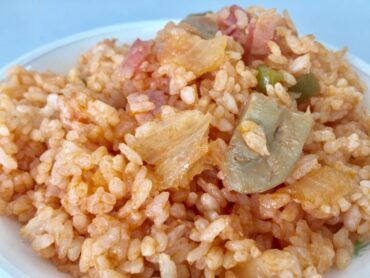 ”クリスマスライス”は、ベーコンやマッシュルーム、ピーマンやタマネギが入ったケチャップ味です。