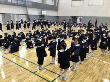 子供たちが、静かに体育館に入場してきます。