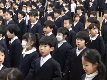 全校の子供たちの元気な歌声が響きます。