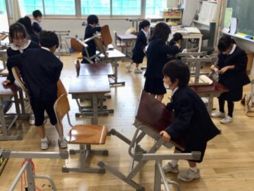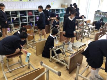 5年生も、机と椅子のほこり取りに取り組んでいます。