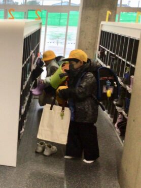 児童玄関にもにぎやかな子供たちの声が戻ってきました。