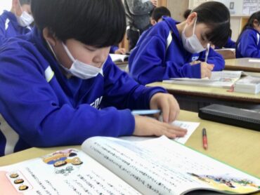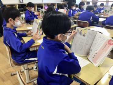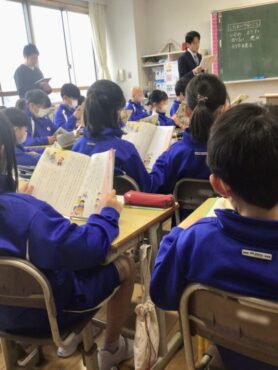先生が読むのを聞いた後、近くの友達と意見交換をします。